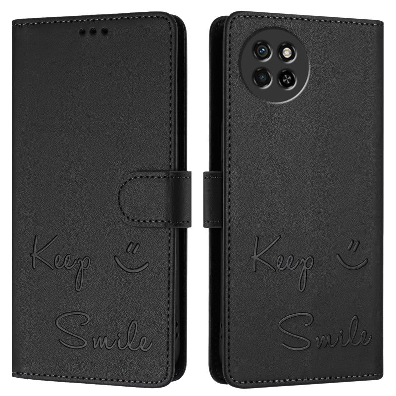 For itel S23 S665L Smile Embossing RFID Leather Phone Case(Black)