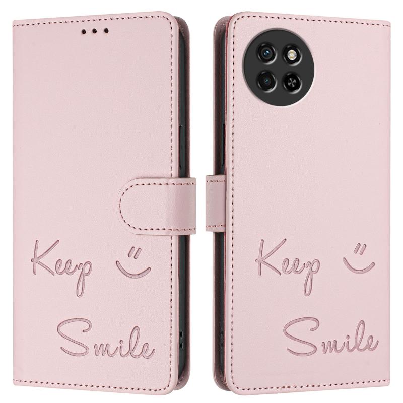For itel S23 S665L Smile Embossing RFID Leather Phone Case(Pink)