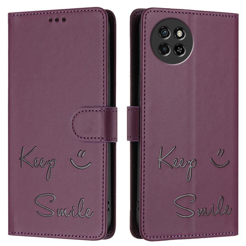For itel S23 S665L Smile Embossing RFID Leather Phone Case(Violet)
