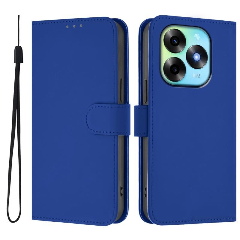 Για το itel S23 + δέρμα αισθάνονται στερεό χρώμα δερμάτινη θήκη τηλεφώνου με κορδόνι (σκούρο μπλε)