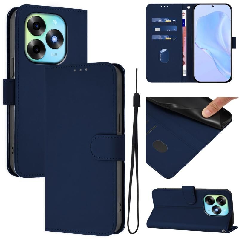 Για το itel S23+ Skin Feel Solid Color δερμάτινη θήκη τηλεφώνου με κορδόνι (Ναυτικό μπλε)