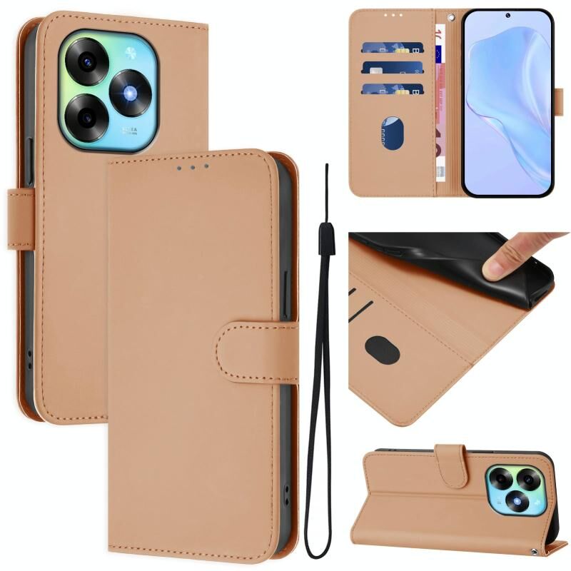 Για το itel S23+ Skin Feel Solid Color δερμάτινη θήκη τηλεφώνου με κορδόνι (Nude)