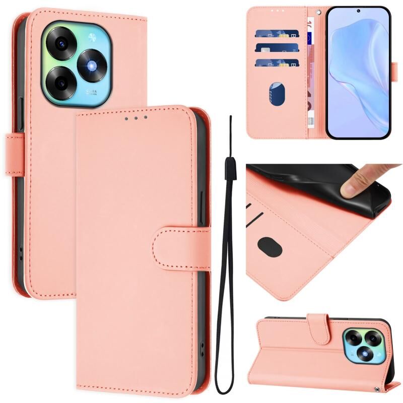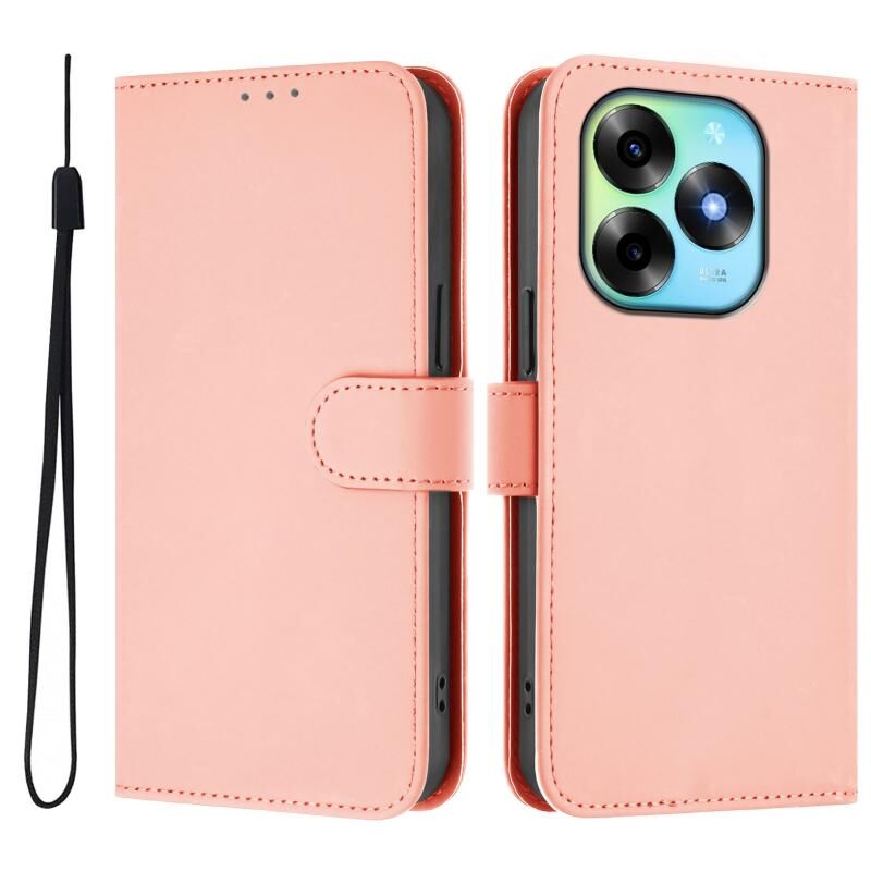 Για το itel S23 + δέρμα αισθάνονται στερεό χρώμα δερμάτινη θήκη τηλεφώνου με κορδόνι (ροζ)