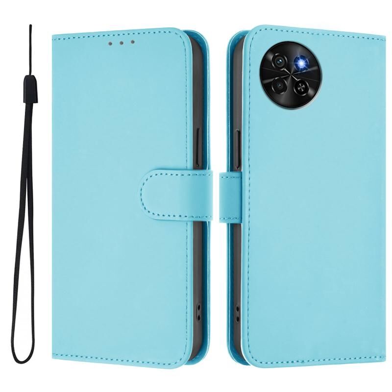 Για το itel S23 Skin Feel Αμιγές χρώμα δερμάτινη θήκη τηλεφώνου με κορδόνι (Sky Blue)