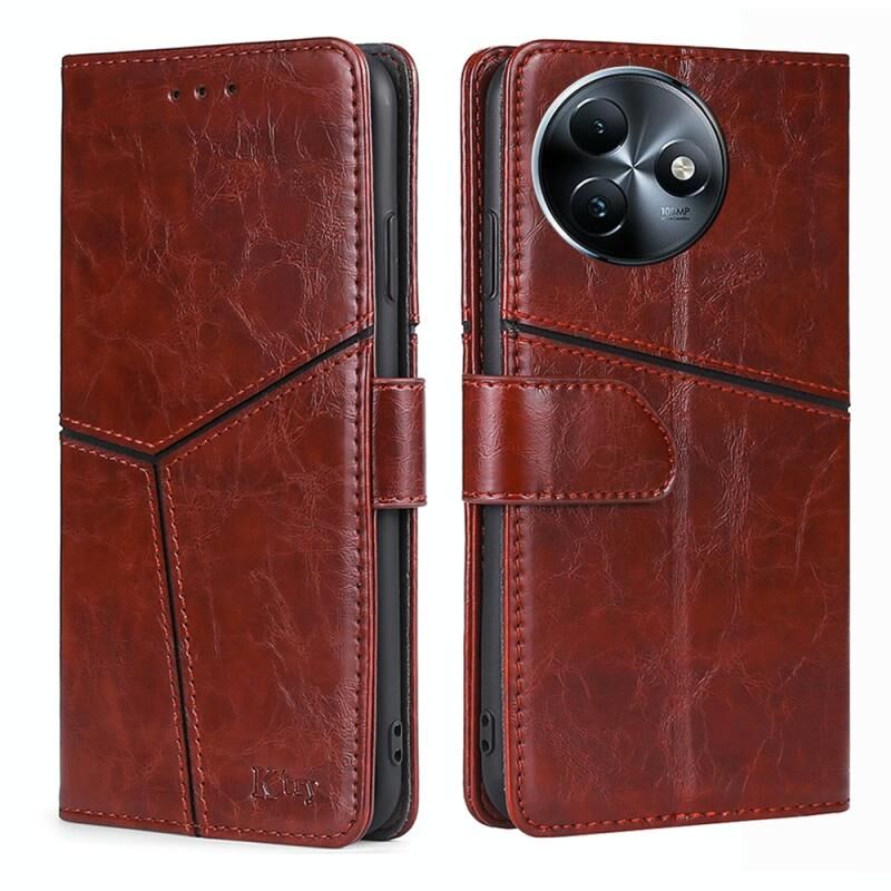 Για Itel S24 4G γεωμετρική ραφή δερμάτινη θήκη τηλεφώνου (σκούρο καφέ)