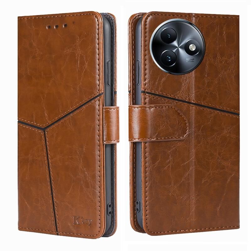 Για Itel S24 4G γεωμετρική ραφή δερμάτινη θήκη τηλεφώνου (ανοιχτό καφέ)