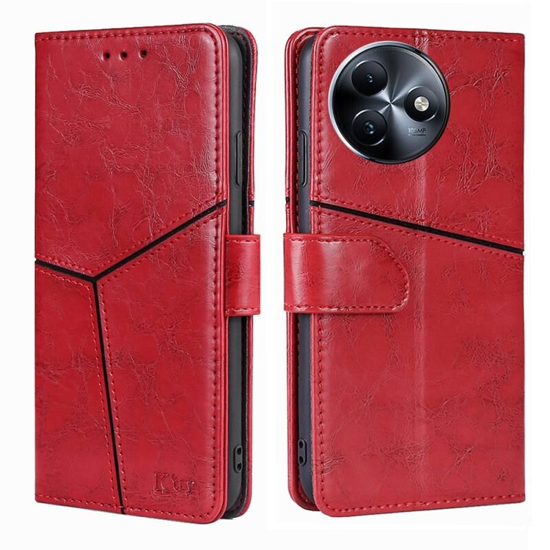 Για Itel S24 4G γεωμετρική ραφή δερμάτινη θήκη τηλεφώνου (κόκκινο)
