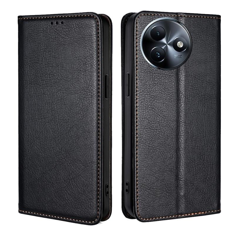 Για το Itel S24 4G Gloss Oil Solid Color Μαγνητική δερμάτινη θήκη τηλεφώνου (μαύρο)