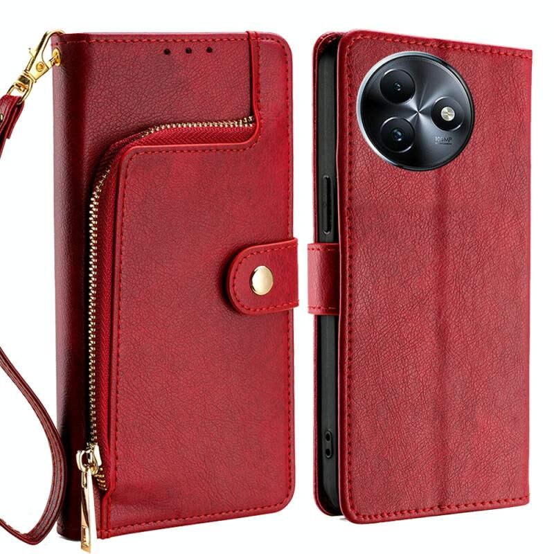 Για Itel S24 4G φερμουάρ τσάντα δερμάτινη θήκη τηλεφώνου (κόκκινο)