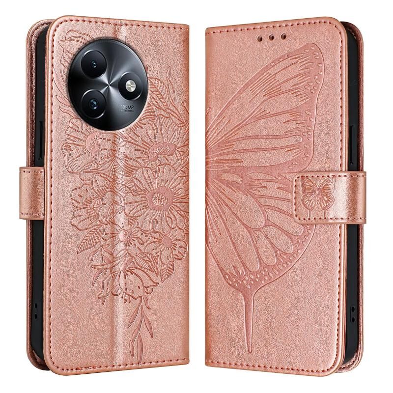 Θήκη τηλεφώνου δερμάτινη με ανάγλυφο σχέδιο πεταλούδας για itel S24 (Ροζ χρυσός)