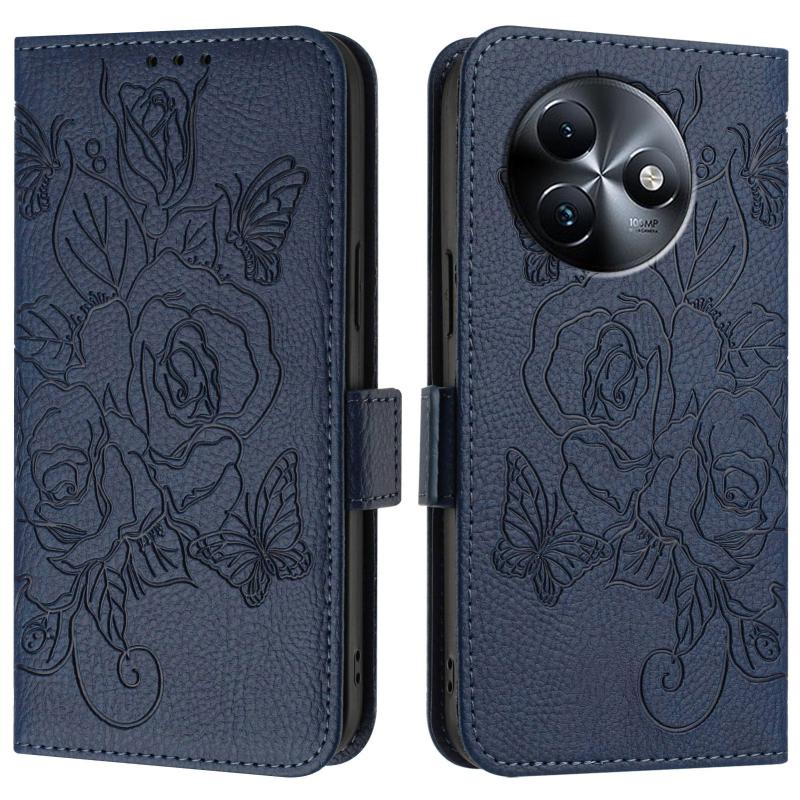 For itel S24 Embossed Rose RFID Anti-theft Leather Phone Case(Dark Blue)