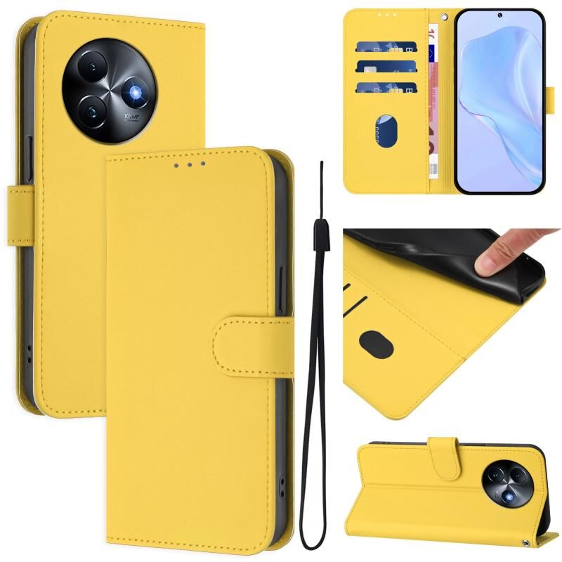 Για το itel S24 Skin Feel Αμιγές χρώμα δερμάτινη θήκη τηλεφώνου με κορδόνι (κίτρινο λεμόνι)