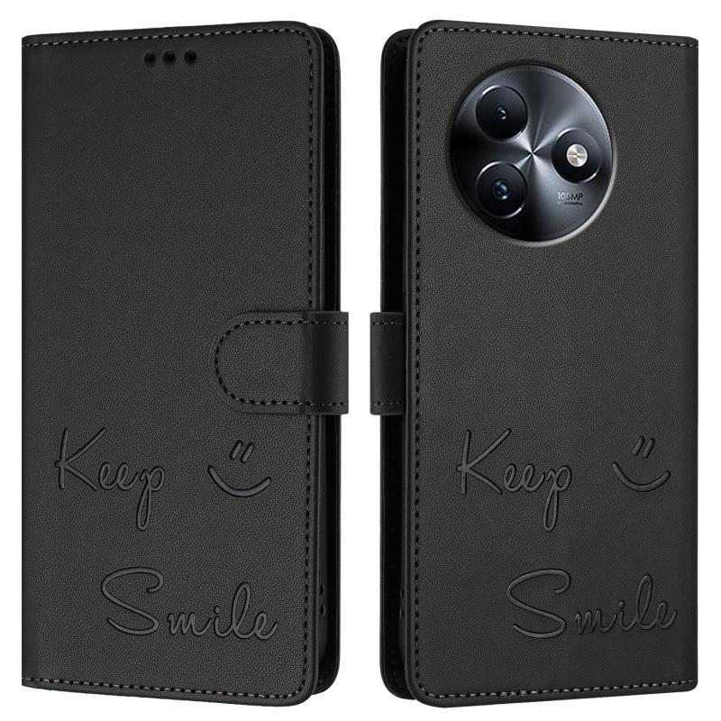 For itel S24 Smile Embossing RFID Leather Phone Case(Black)