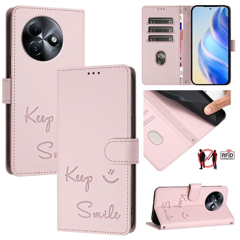 For itel S24 Smile Embossing RFID Leather Phone Case(Pink)