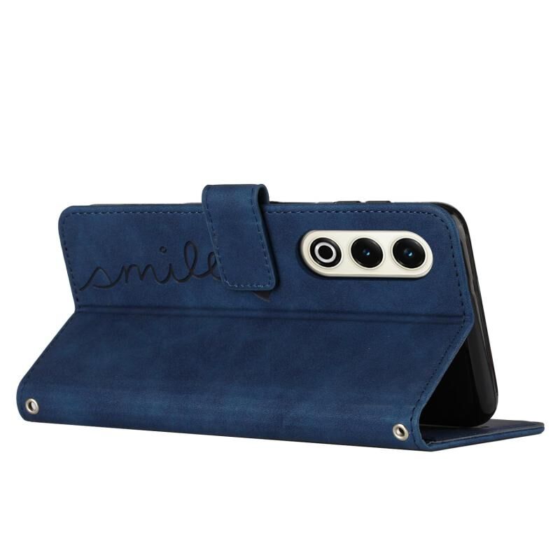 Για το itel S25 Skin Feel Heart ανάγλυφη δερμάτινη θήκη τηλεφώνου με μακρύ κορδόνι (μπλε)