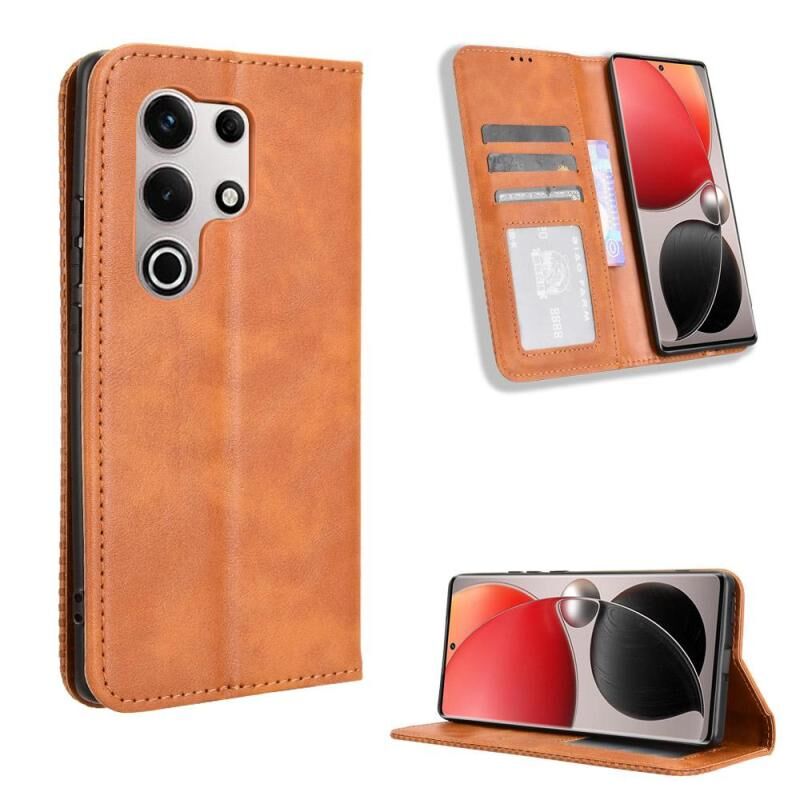 Για itel S25 Ultra 4G μαγνητική πόρπη ρετρό υφή δερμάτινη θήκη τηλεφώνου (καφέ)