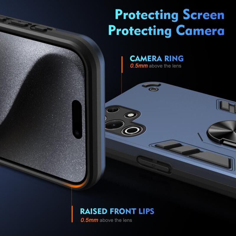 For itel S25 Ultra Shockproof Metal Ring Holder Phone Case(Blue)