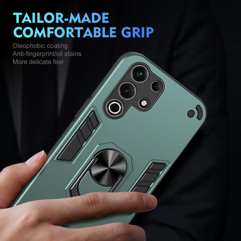 For itel S25 Ultra Shockproof Metal Ring Holder Phone Case(Green)
