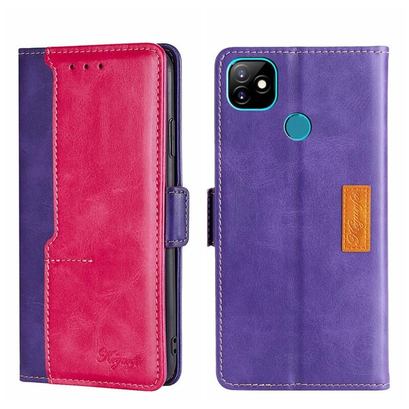 Για Itel Vision 1 Αντίθετο χρώμα πλευρά πόρπη δερμάτινη θήκη τηλεφώνου (Μωβ + Ροζένιο Κόκκινο)