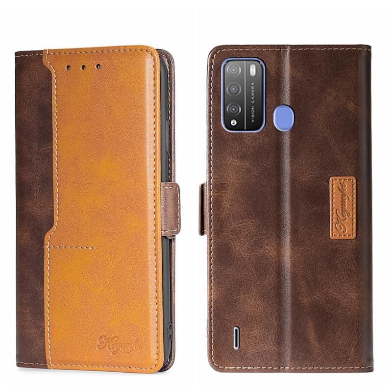 Για Itel Vision 1 Pro αντίθεση χρώμα πλευρά πόρπη δερμάτινη θήκη τηλεφώνου (σκούρο καφέ + χρυσό)
