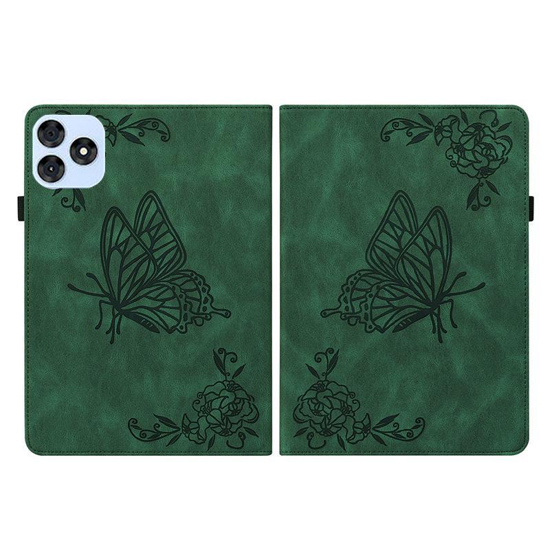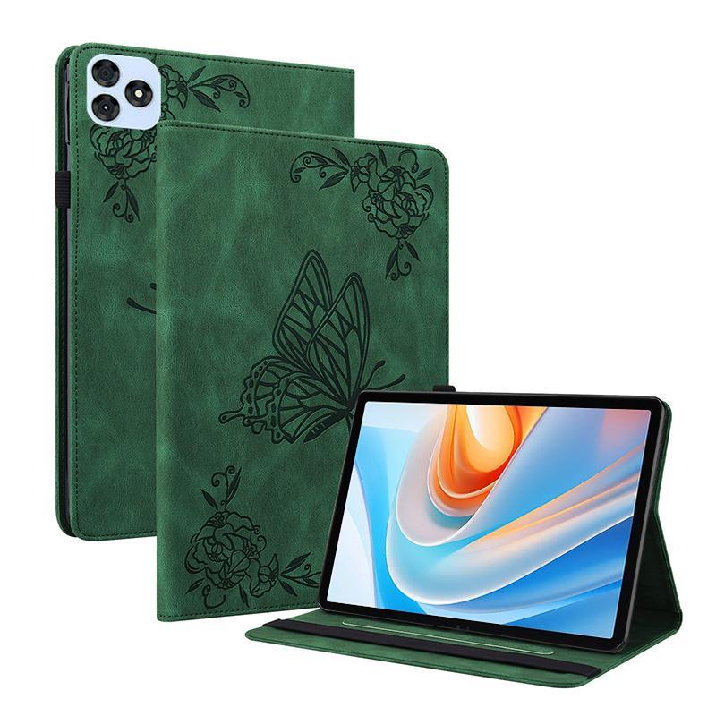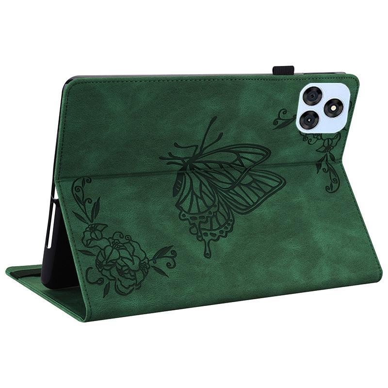 For itel VistaTab 30 Butterfly Flower Embossed Leather Tablet Case(Green)