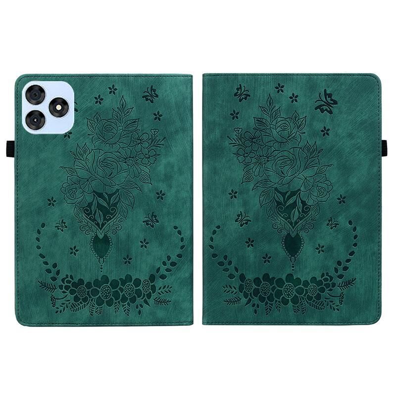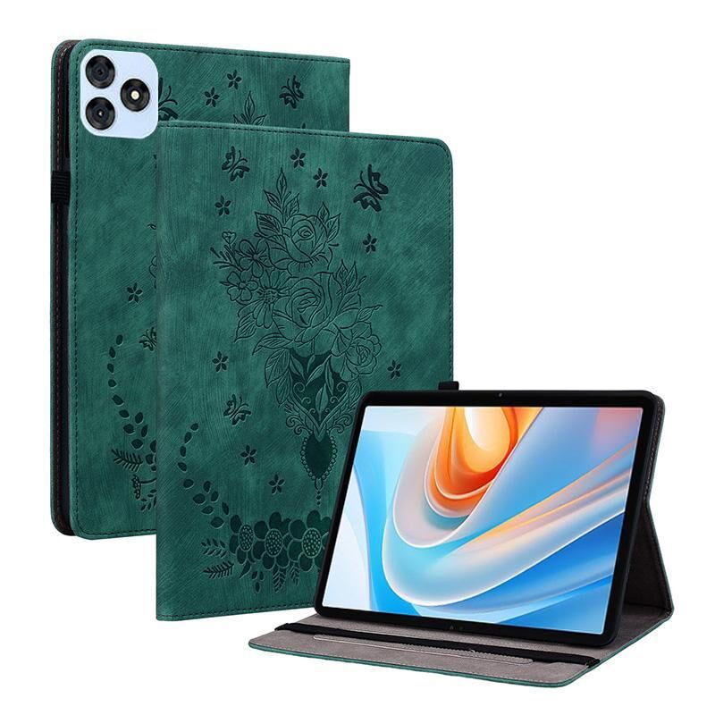 For itel VistaTab 30 Butterfly Rose Embossed Leather Tablet Case(Green)