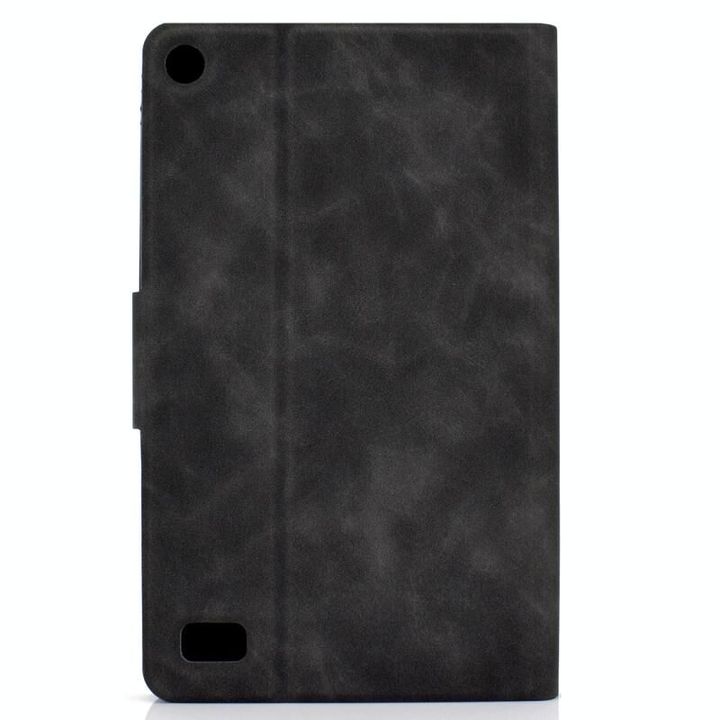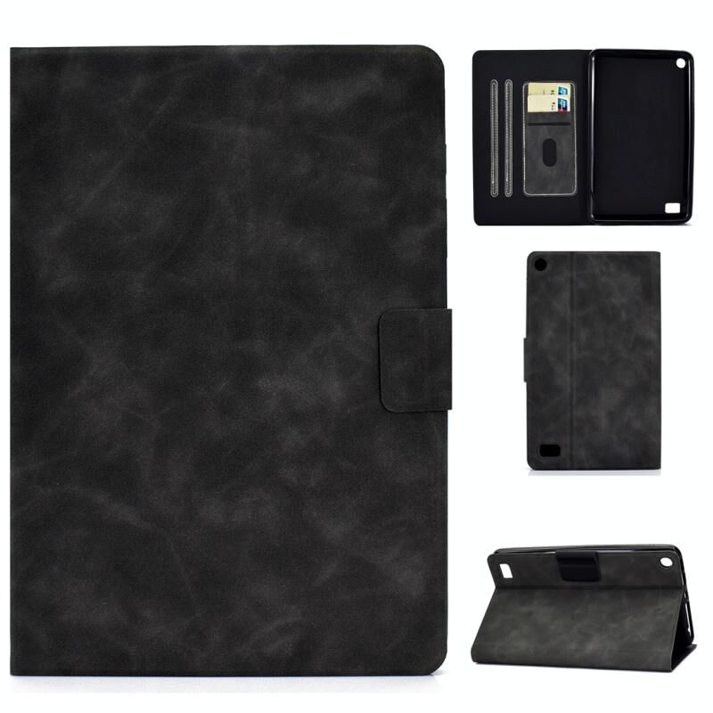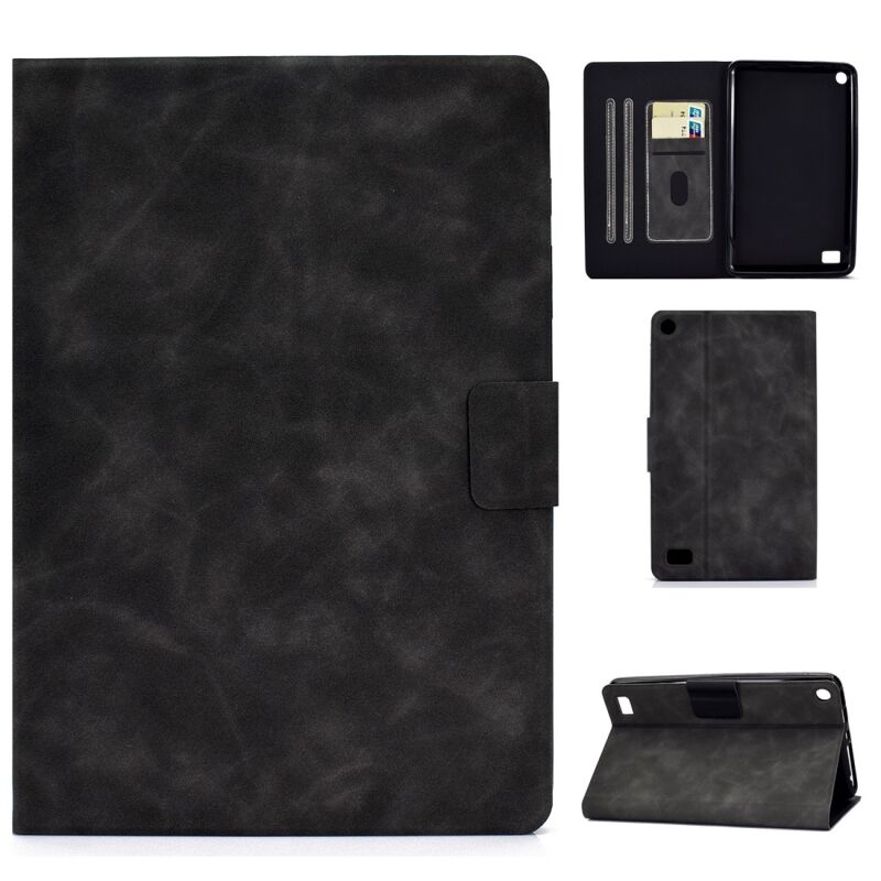 Για το Kindle Fire 7 2015 / 2017 / 2019 Θήκη από δέρμα αγελάδας με οριζόντια υφή, με θήκη για κάρτες και υποδοχές και λειτουργία ύπνου / αφύπνισης (γκρι)