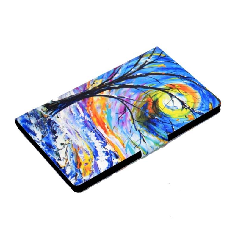 Θήκη δέρματος οριζόντιας αναδίπλωσης TPU με ηλεκτρική πρέσα για Kindle Fire HD 10 2015 / 2017 / 2019 με βάση & υποδοχή κάρτας & λειτουργία ύπνου / αφύπνισης (Ακουαρέλα Δέντρου)