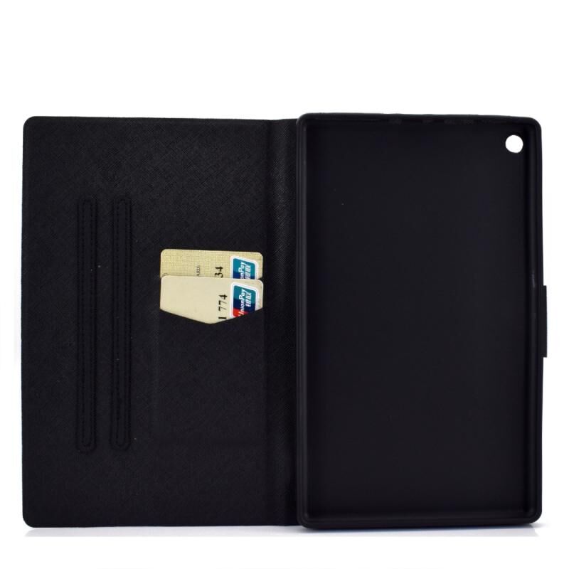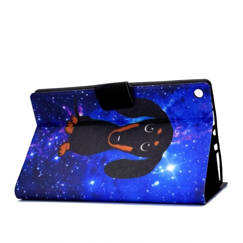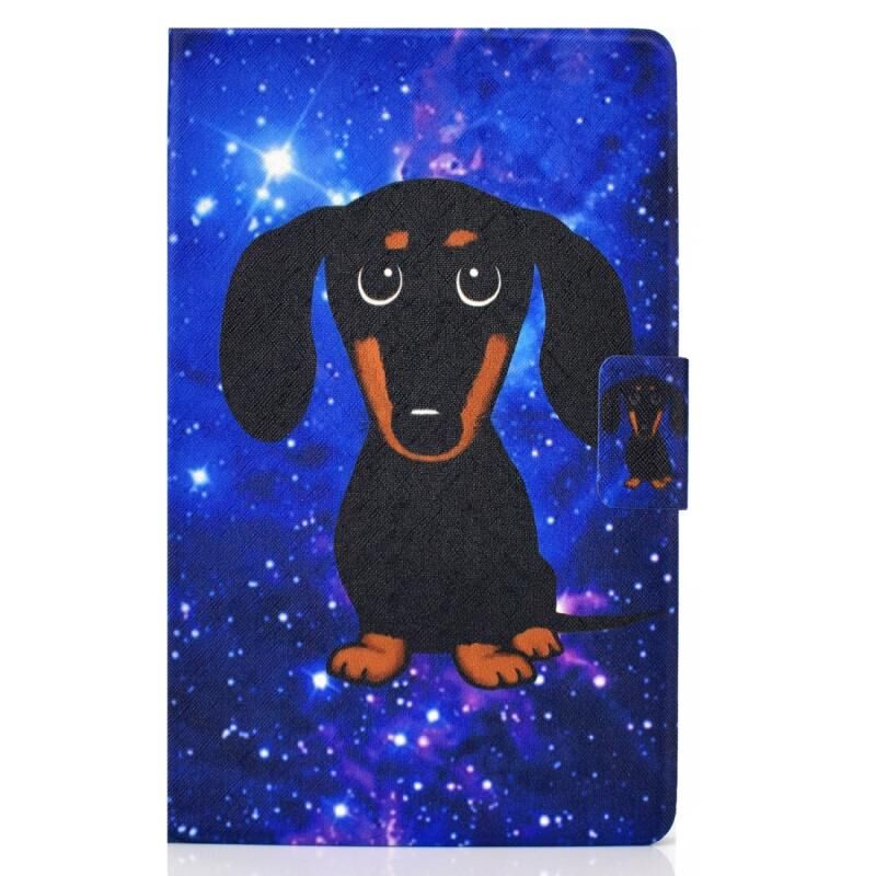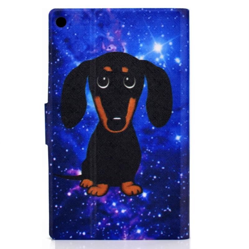 Θήκη δέρματος οριζόντιας αναδίπλωσης TPU ηλεκτρικής πρέσας για Kindle Fire HD 8 2016 / 2017 / 2018 με βάση & υποδοχή κάρτας & λειτουργία ύπνου / αφύπνισης (Μικρός Μαύρος Σκύλος)