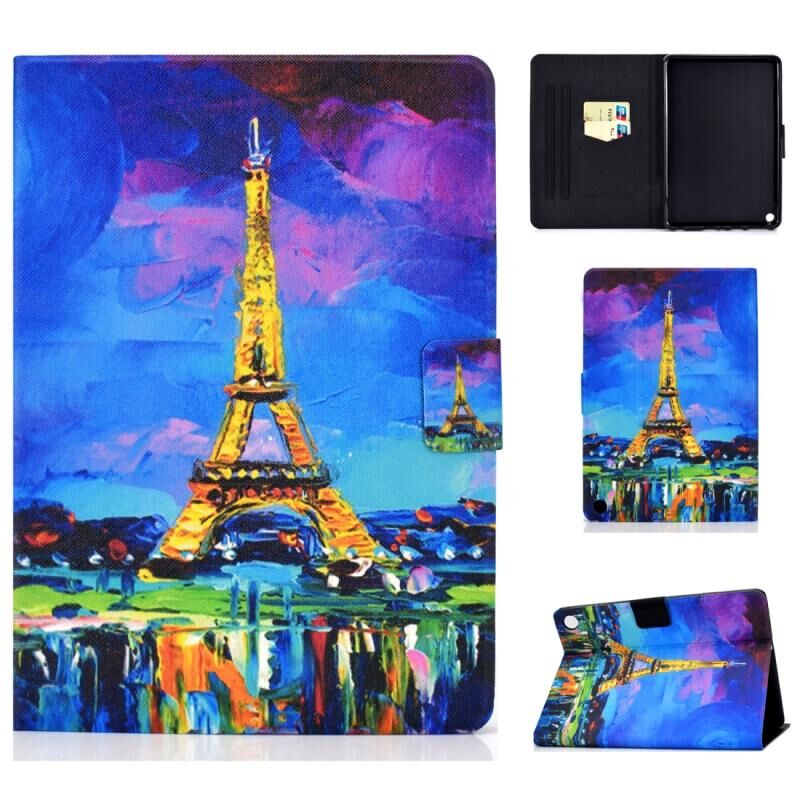 Θήκη δέρματος οριζόντιας αναδίπλωσης TPU ηλεκτρικής πρέσας για Kindle Fire HD 8 (2020) με βάση & υποδοχή κάρτας & λειτουργία ύπνου / αφύπνισης (Πύργος του Άιφελ)