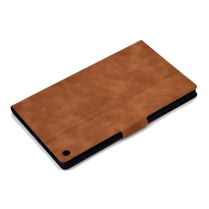 Για Kindle Fire HD8 2016 / 2017 Cowhide Υφή Οριζόντια Flip δερμάτινη θήκη με θήκη & υποδοχές καρτών & Λειτουργία ύπνου / αφύπνισης (καφέ)