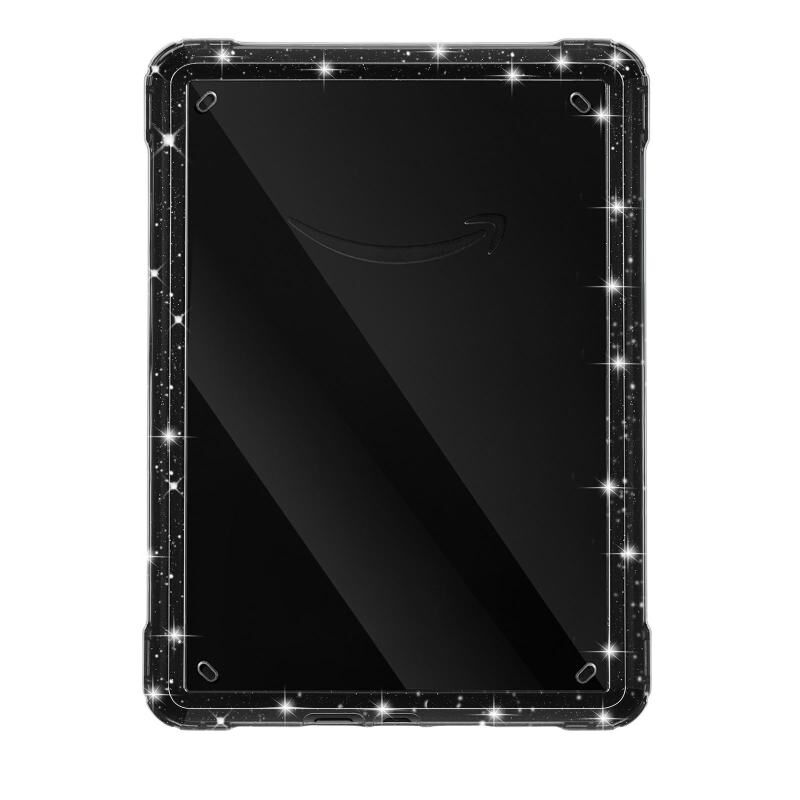 For Kindle Paperwhite 12th Gen 2024 Clear Case TPU+PC Lightweight Scratch-Proof Cover Black Glitter