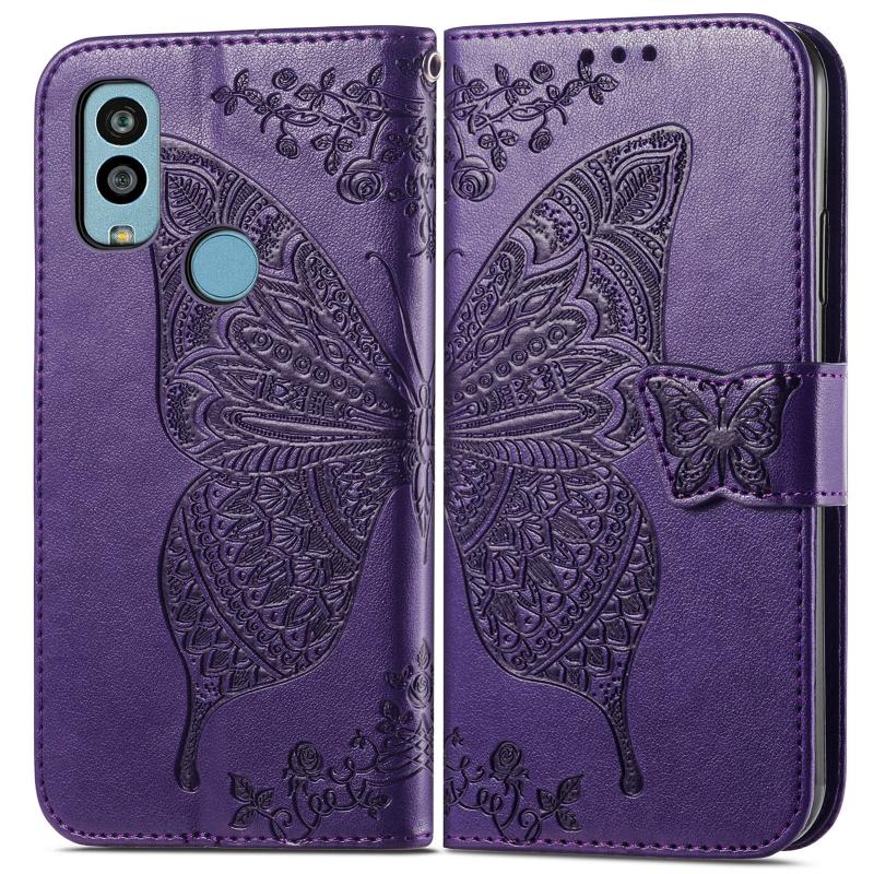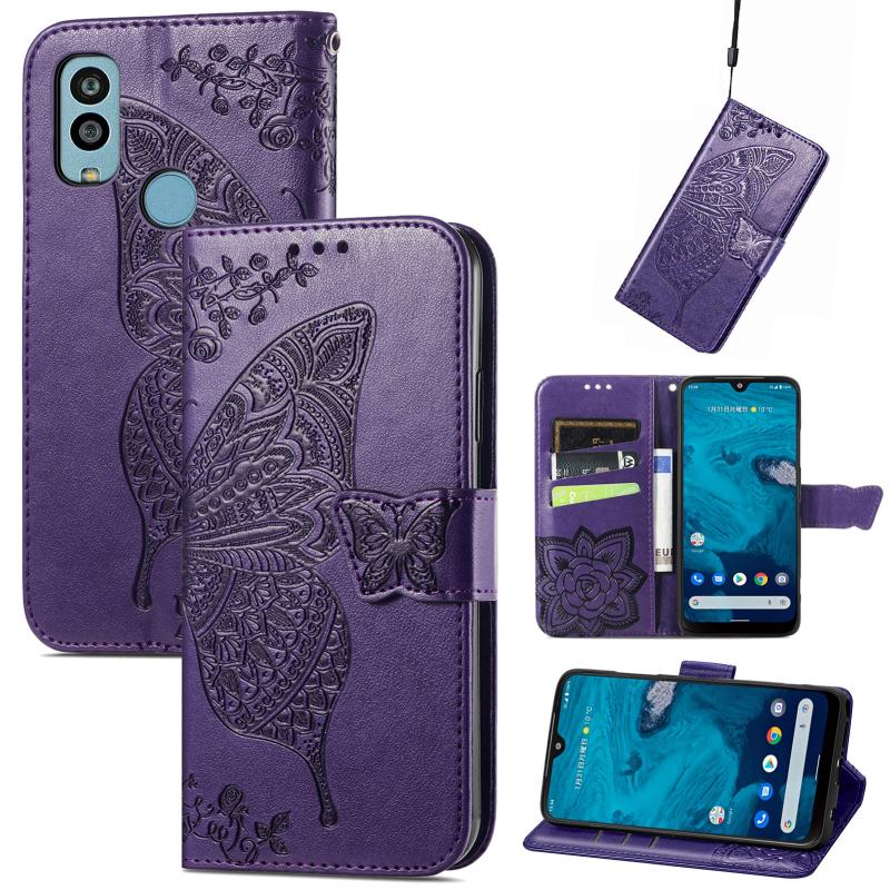 For Kyocera Android One S10 Butterfly Love Flower Embossed Leather Phone Case(Purple)