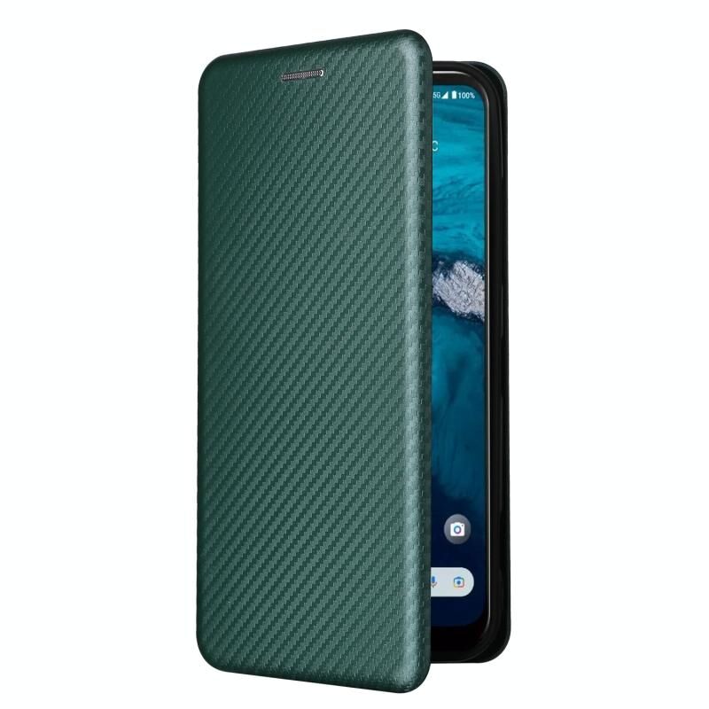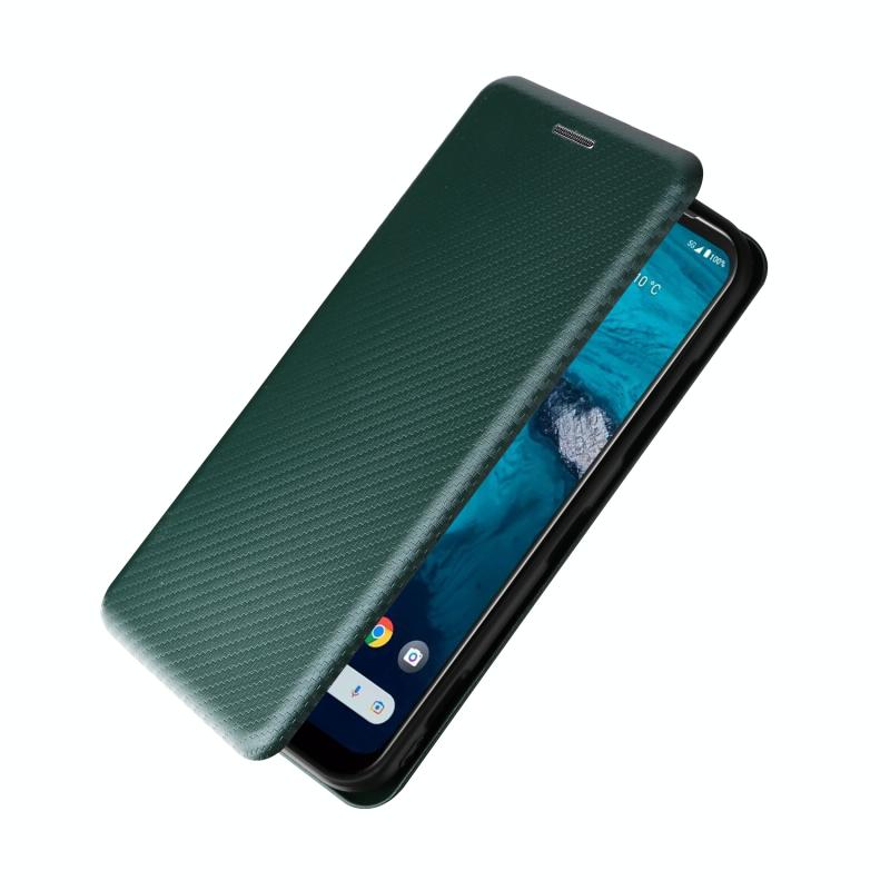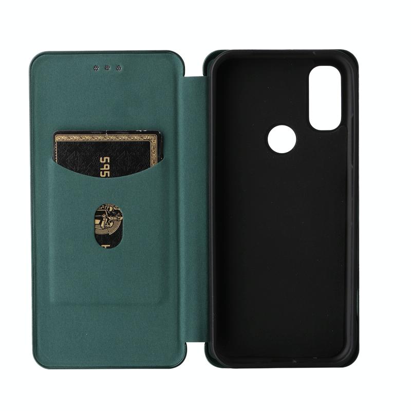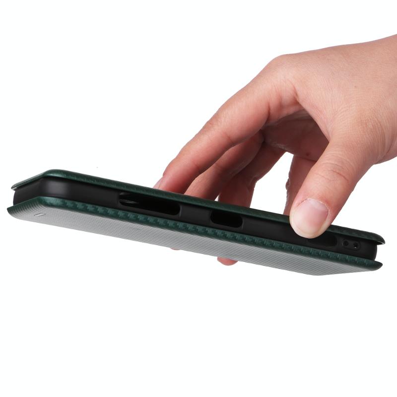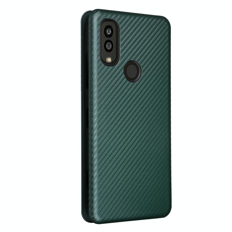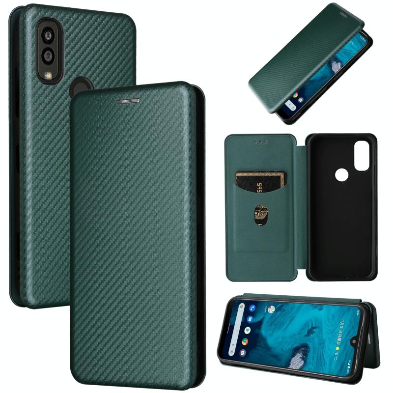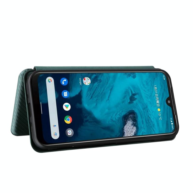 Θήκη τηλεφώνου δερμάτινη, τύπου flip, με υφή ανθρακονημάτων για Kyocera Android One S10 (πράσινο)