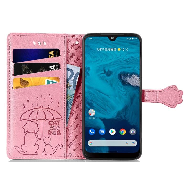 Θήκη τηλεφώνου δερμάτινη με ανάγλυφο σχέδιο γάτας και σκύλου για Kyocera Android One S10 (Μωβ)