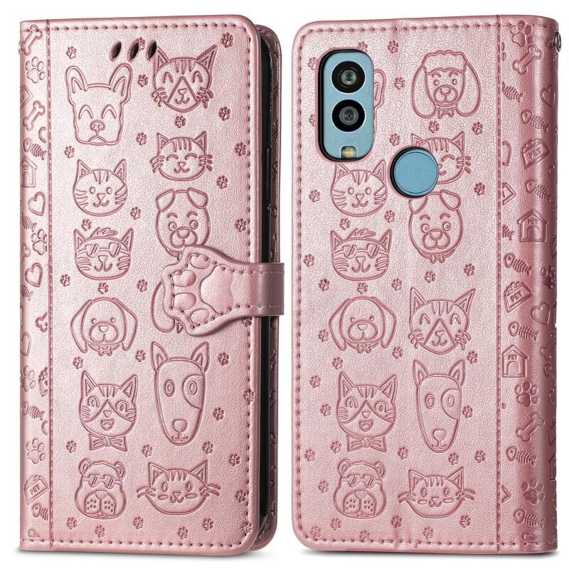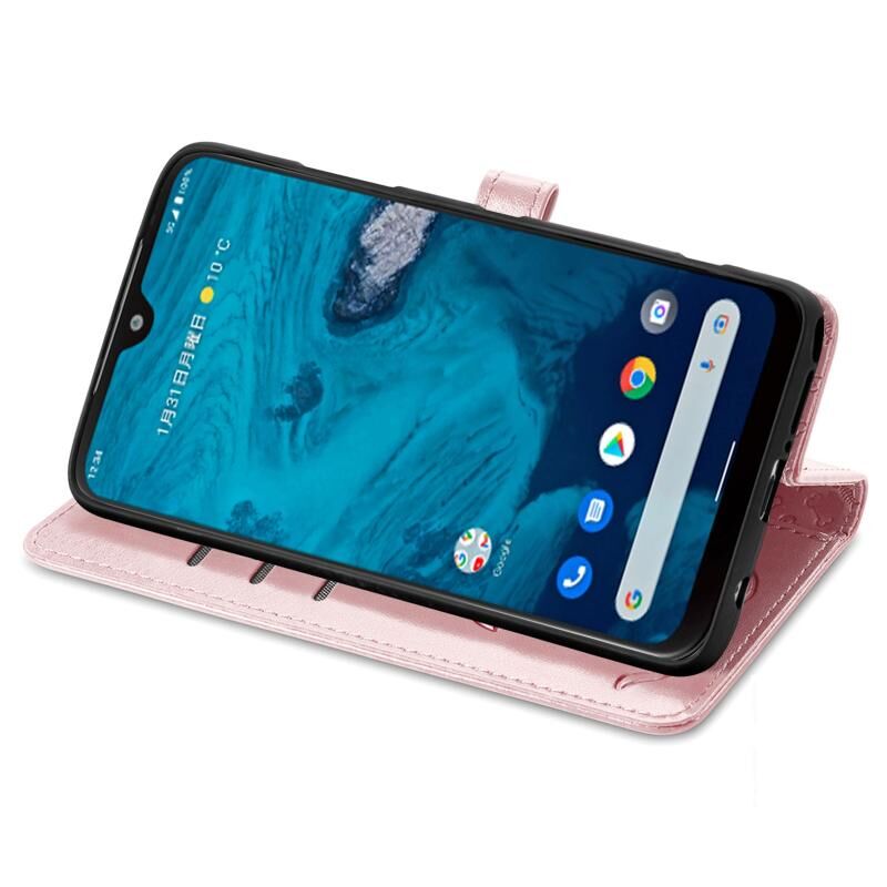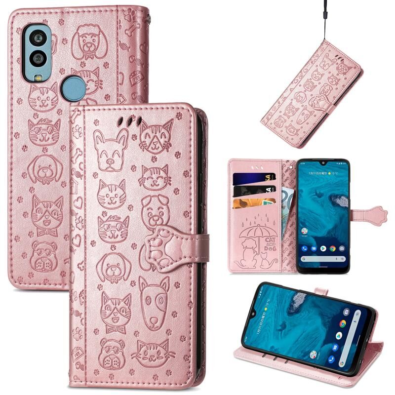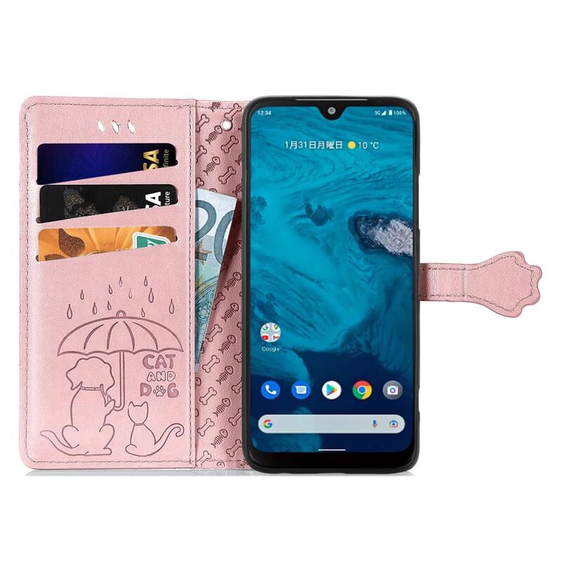 Θήκη τηλεφώνου δερμάτινη με ανάγλυφο σχέδιο γάτας και σκύλου για Kyocera Android One S10 (Μωβ)