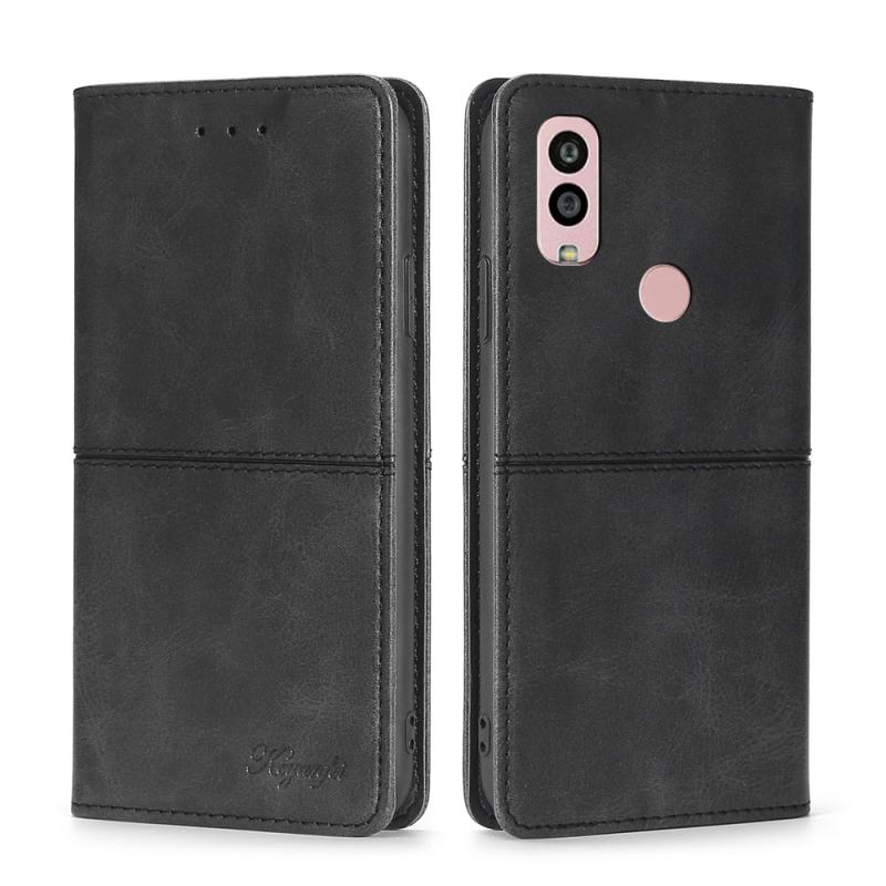 Θήκη τηλεφώνου δερμάτινη, οριζόντια, με μαγνητικό κλείσιμο και υφή αγελάδας για Kyocera Android One S10 (Μαύρο)