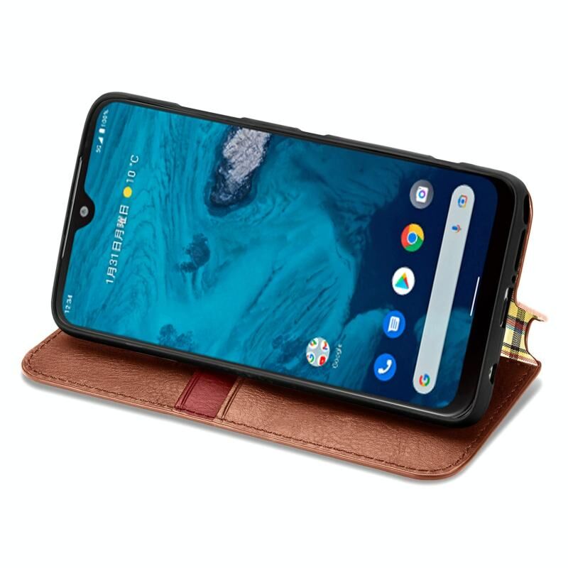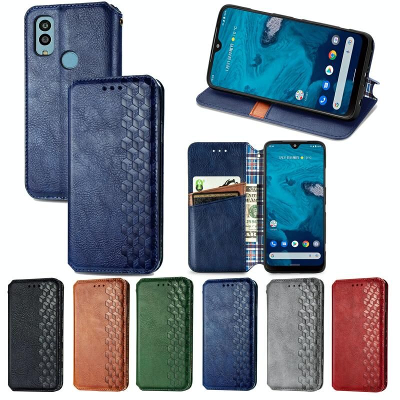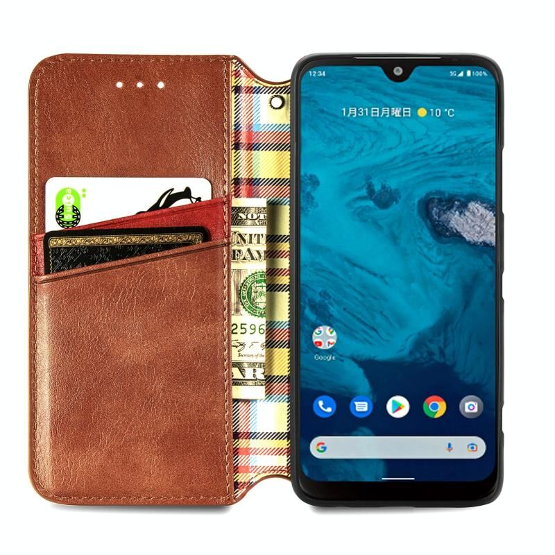 Για Kyocera Android One S10 Cubic Grid Πιεσμένο μαγνητικό δέρμα τηλέφωνο υπόθεση (καφέ)