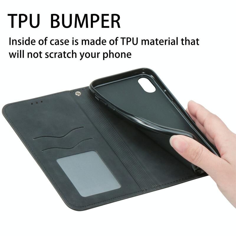 Για Kyocera Android One S10 Ρετρό δέρμα αίσθηση μαγνητικό δέρμα τηλέφωνο υπόθεση (Μαύρο)