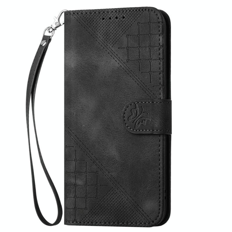 For Kyocera Android One S10 / S9 Grid Butterfly Embossed Pattern Flip Leather Phone Case with Lanyard(Black)