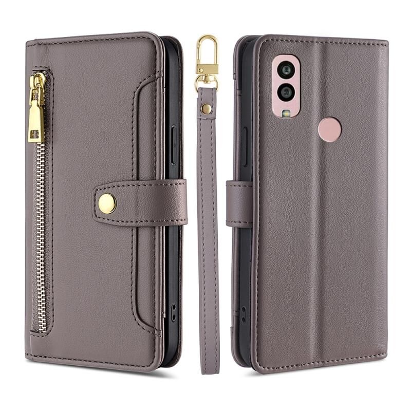 Θήκη τηλεφώνου δερμάτινη με φερμουάρ και σχέδιο αρνιού για Kyocera Android One S10, χιαστί (Πορτοκαλί)