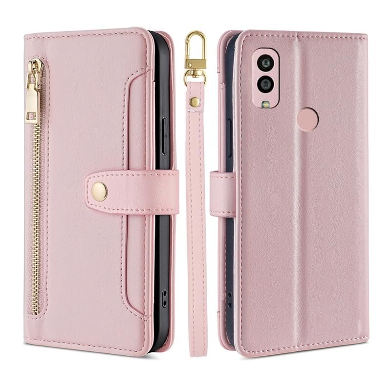 Θήκη τηλεφώνου δερμάτινη με φερμουάρ και σχέδιο αρνιού για Kyocera Android One S10, χιαστί (Πορτοκαλί)