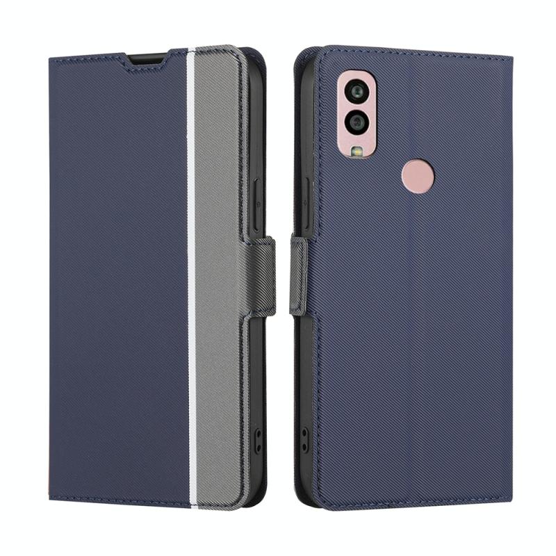 Θήκη τηλεφώνου από δέρμα με υφή Twill για Kyocera Android One S10, με πλευρική αγκράφα (Μπλε)