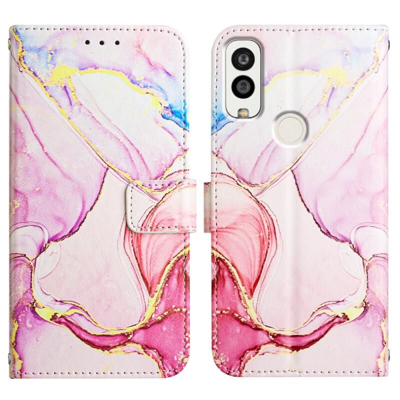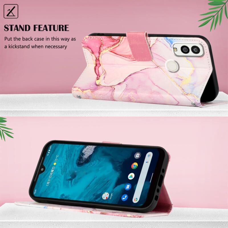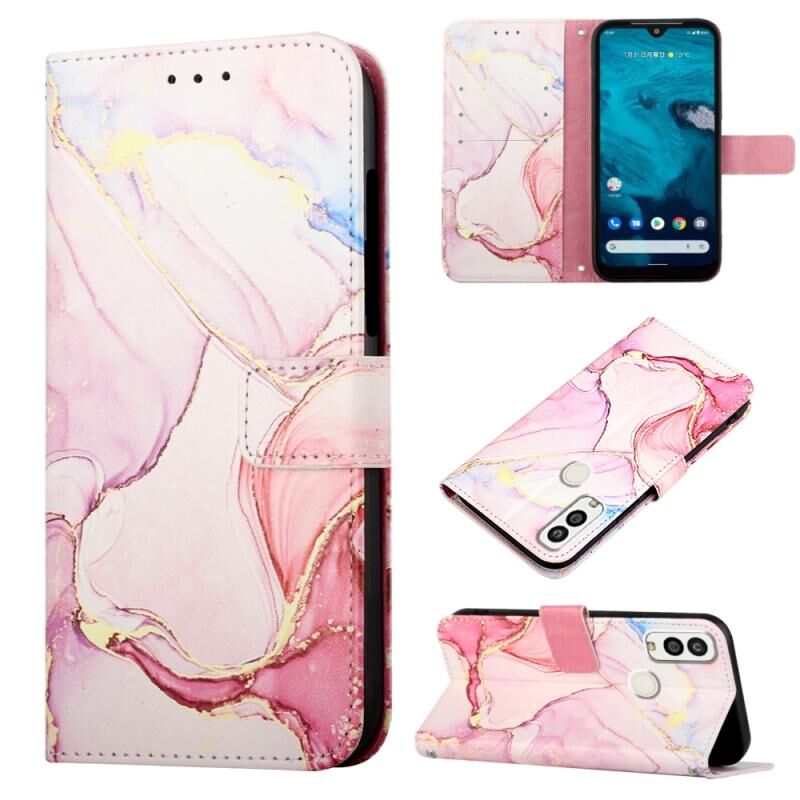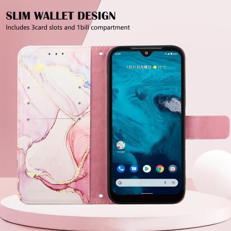 Θήκη τηλεφώνου τύπου βιβλίου από δέρμα με σχέδιο μάρμαρου για Kyocera Android One S9/KC-S304/Digno SANGA Edition PT003 (Ροζ Μωβ Χρυσό LS001)