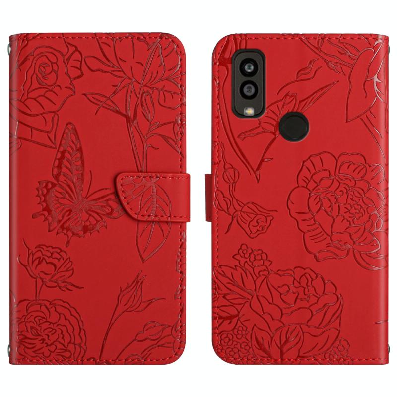 For Kyocera Android One S9 Skin Feel Butterfly Peony Embossed Leather Phone Case(Red)