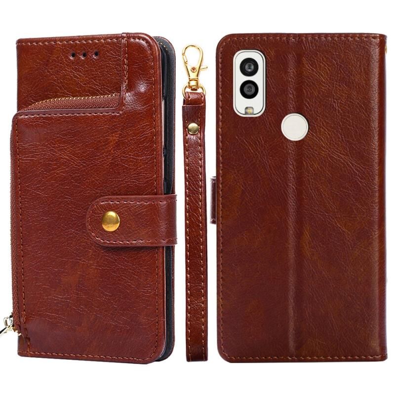 Για Kyocera Android One S9 φερμουάρ τσάντα δερμάτινη θήκη τηλεφώνου (Καφέ)