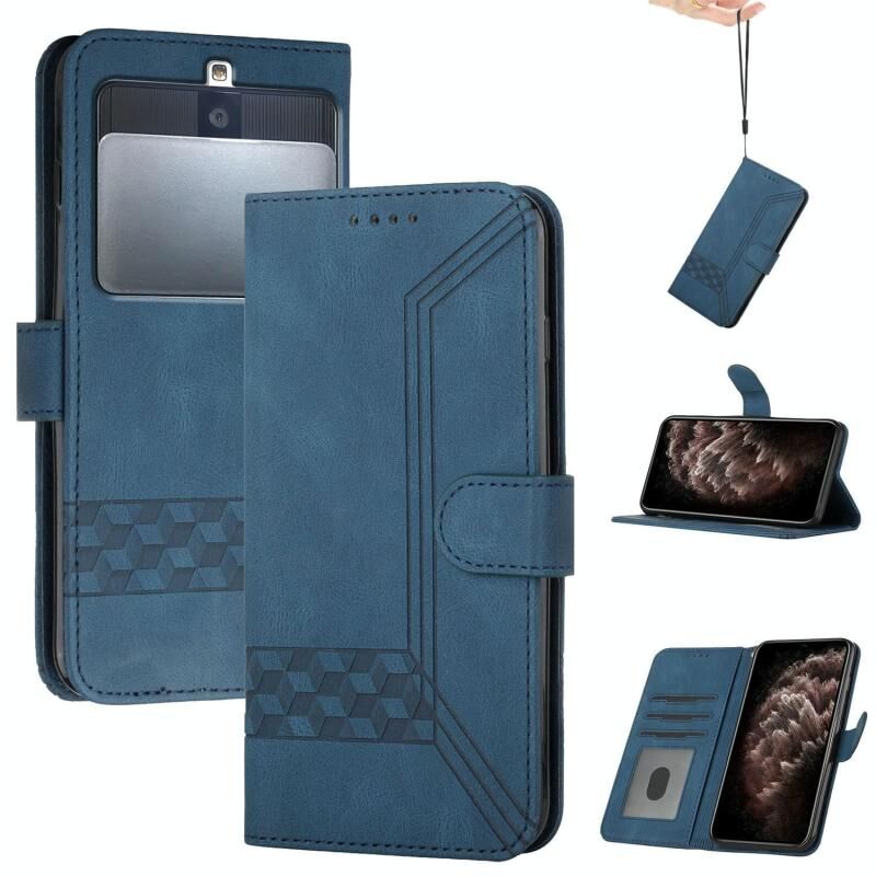 Θήκη τηλεφώνου δερμάτινη αναδιπλούμενη για Kyocera Basio 3 Cubic Skin Feel (Μπλε)