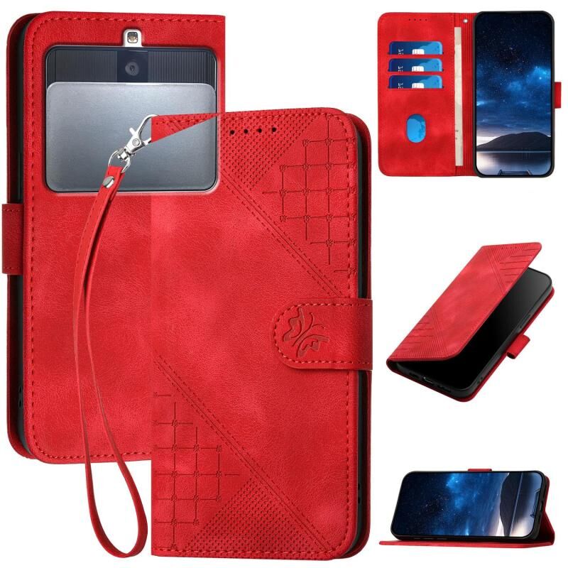 For Kyocera Basio 3 Grid Butterfly Embossed Pattern Flip Leather Phone Case with Lanyard(Red)
