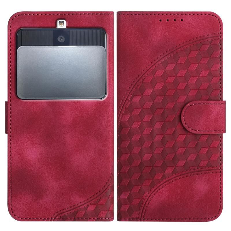 Θήκη δερμάτινη για Kyocera Basio 3 YX0060 με ανάγλυφο σχέδιο ελέφαντα και λουρί (Κόκκινο Ρόδι)
