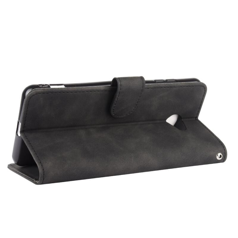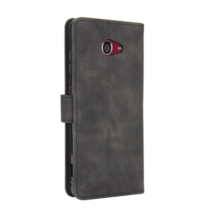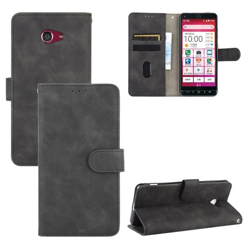 For Kyocera Basio 4 KYV47 Solid Color Skin Feel Magnetic Buckle Horizontal Flip Calf Texture PU Leather Case with Holder & Card Slots & Wallet(Black)